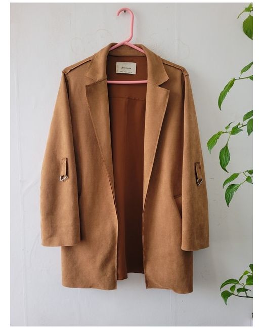 Hi once I worn for an hour it's in a new condition This beautiful camel colour coat from Stradivarius is a must-have for any fashion-forward woman. With a mid-length overcoat style, it's perfect for any season, whether you're braving the winter months or enjoying the summer sun. Made from high-quality polyester and elastane, it's both stylish and comfortable. The classic colour and timeless design make it a versatile addition to any wardrobe, and it's sure to turn heads wherever you go. Whether you're dressing up for a night out or simply running errands around town, this coat is the perfect choice. Don't miss out on the chance to add this stunning Stradivarius coat to your collection.