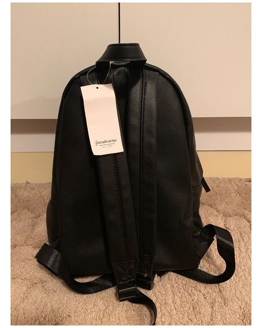 Stradivarius Bag . Condition is New with tags. RRP £35.99 Pin badge detail to front Zip fasten Approx size to rear 9x13” Depth 4” Black