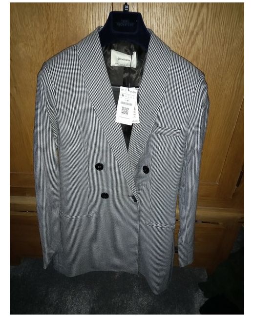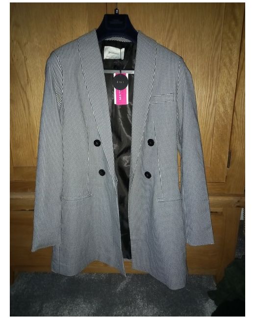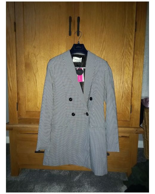 Dog Tooth Check Wool Double Breasted Blazer UK10 BNWT Black