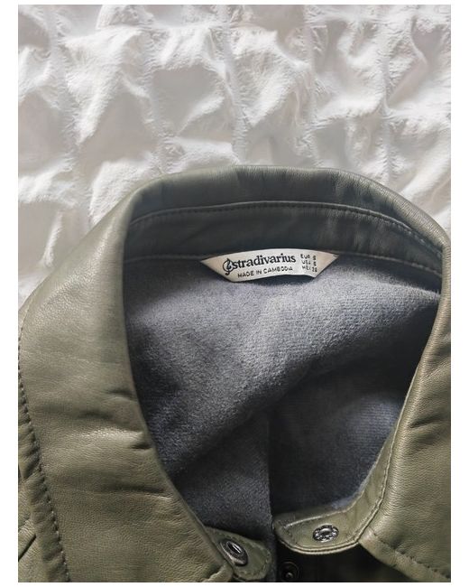 Stradivarius Leather Shacket Jacket Size 8. Condition is New with tags. Dispatched with eBay Delivery – Evri, DPD & UPS Next Day. Leather look khaki shirt jacket. Soft lining