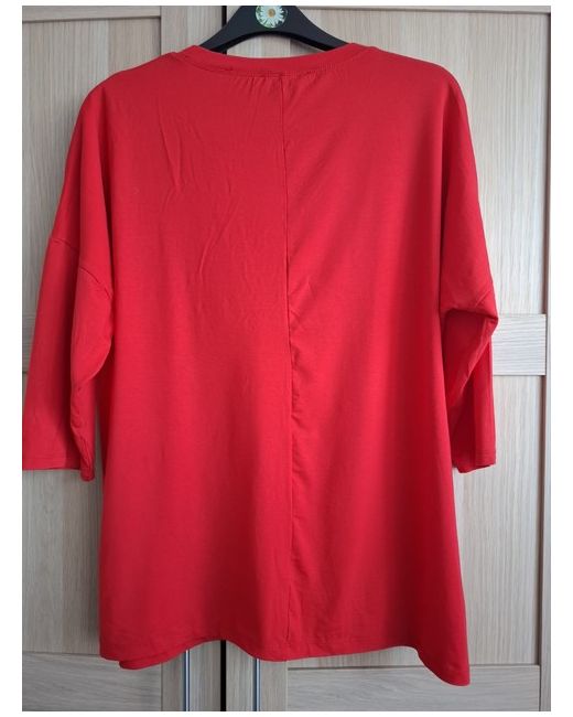 Embrace effortless style with the Over Chic Red Top Blouse, a versatile addition to your wardrobe that's perfect for the transition from spring to summer. The blouse features a comfortable crew neck and flattering 3/4 sleeves, making it an ideal choice for casual outings. Its one-size-fits-all design ensures a relaxed fit for a variety of body types. pit to pit 65cm, length 72cm, stretching fabric, for size from 16 to 20 UK Crafted from a soft cotton blend, this garment promises both comfort and durability. The rich red hue is complemented by a subtle gold leaf detail, adding a touch of elegance to your ensemble. Machine washable for easy care, this blouse is as practical as it is fashionable.