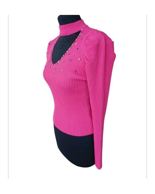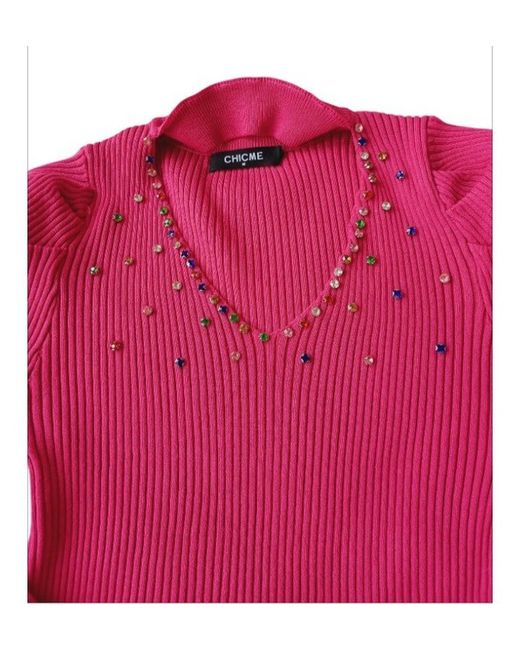 Plaid blouse, fuchsia color with choker. Brand: Chic Me.