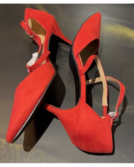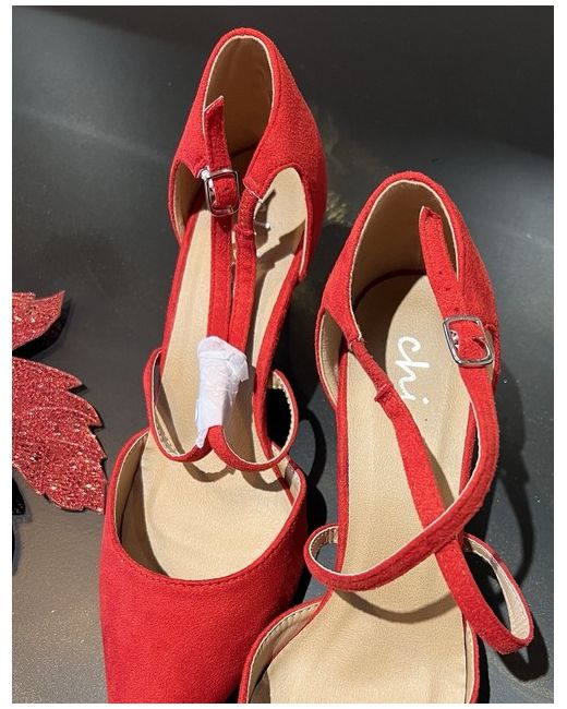 Chic Red Women’s Fashionable Chunky Heel Pointed Toe