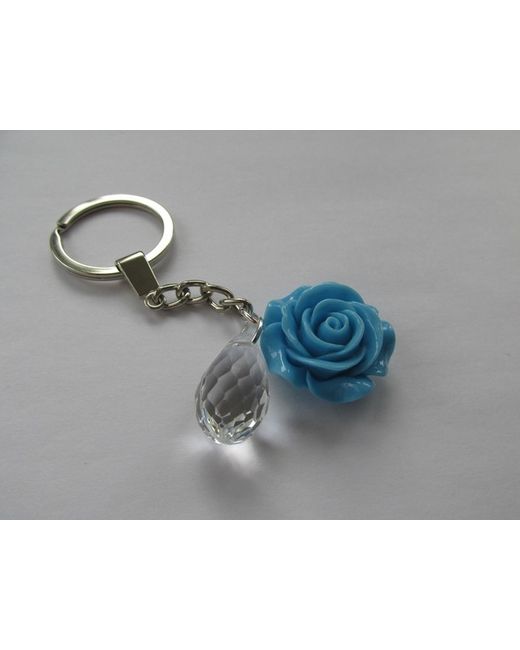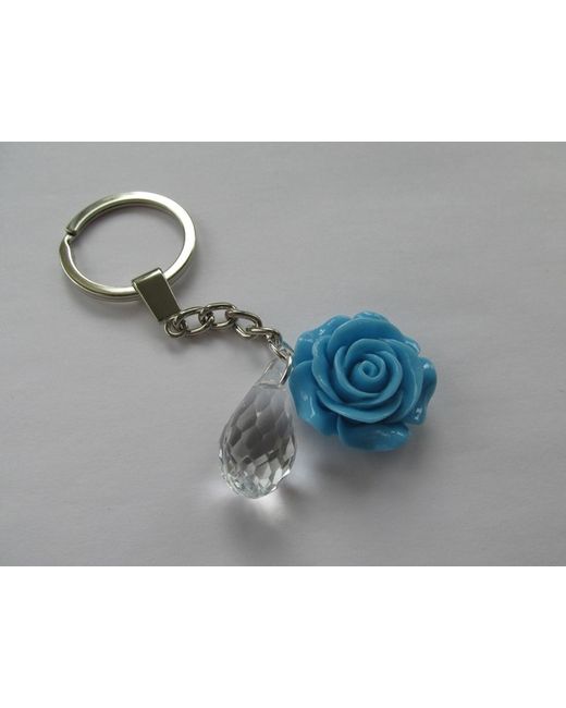 Chain Keyring. Clear Teardrop Charm. Pretty Turquoise Blue Flower Pendant. For many more Personally Designed Creations. (Colour of Gift Box will be Selected at Random).