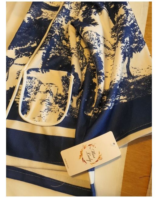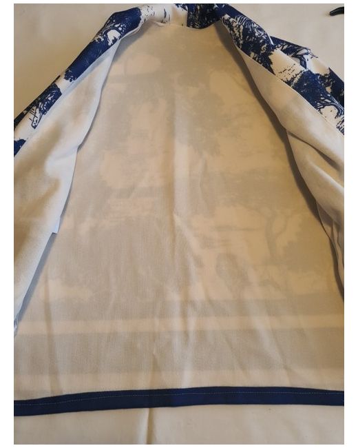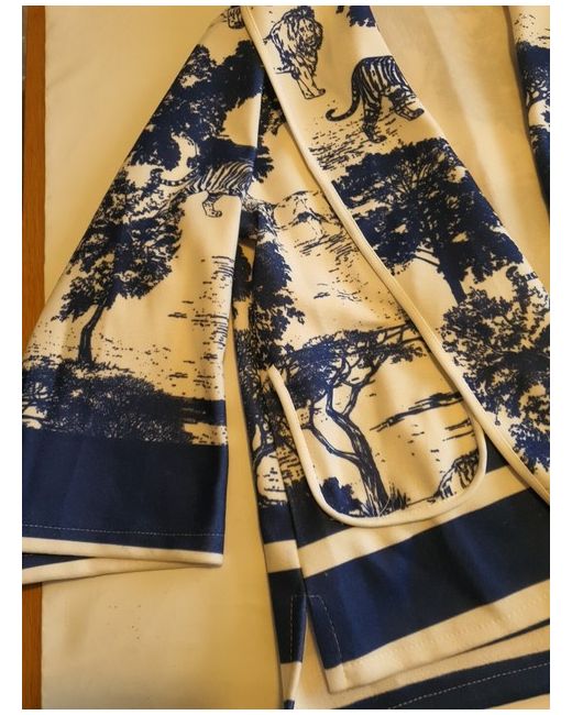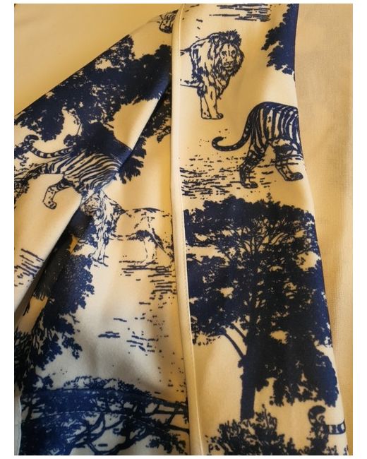 Cream with navy all over print. • Wide sleeve.