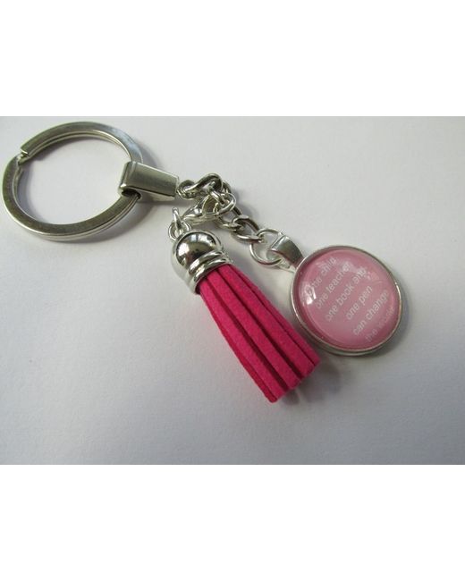 Chain Keyring. REF 12282 KEYRING. One Child - One Teacher Quote/Print. Pink Based Pendant. See Picture for Illustrations. See Text as Pictured. Unusual Pendant.