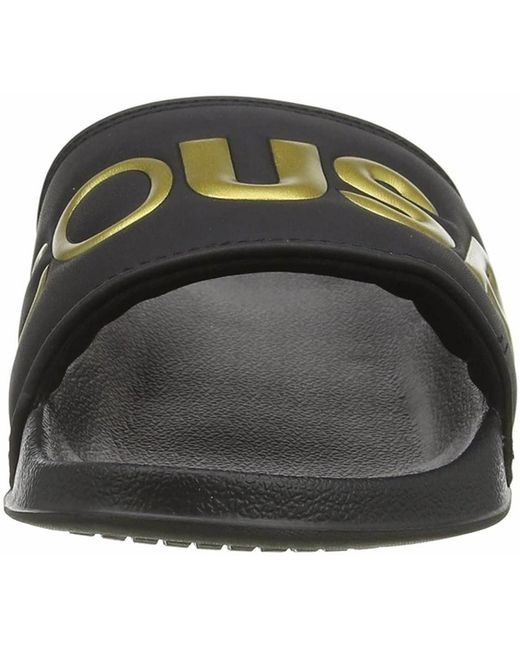 DC Slide SE black gold with genuine suede upper. EVA for comfort and durability. DC's trademarked Pill Pattern tread.