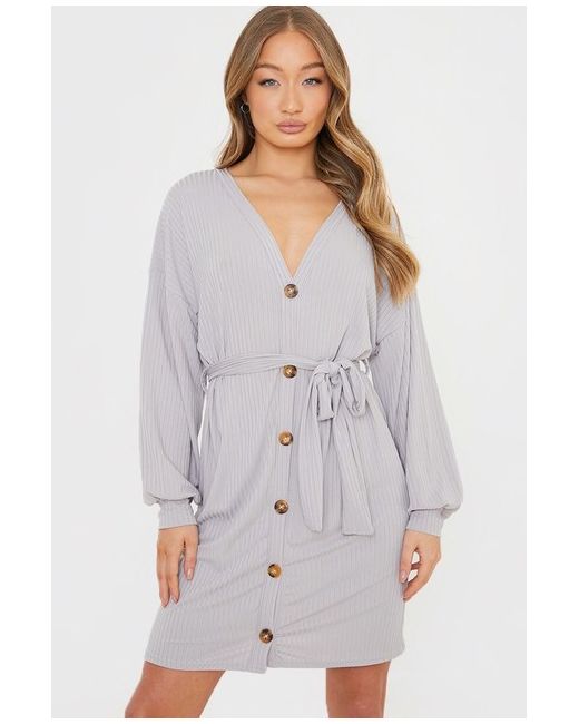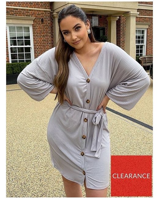 In The Style In The Style X Jac Jossa Rib Button Through Mini Dress - Grey UK 6. In The Style X Jac Jossa Mini Dress Size & Fit True to size - order your usual size Flirty mini length Jac is 5'7" and wears a size 14 Details Mini Dress by In The Style X Jac Jossa Grey Jac Jossa's latest collection adds impact to your basics Button down front Self tie belted waist Long cuffed sleeves create a full silhouette Flirty V-neckline Pin-flaunting silhouette Material Material Content: 95% Polyester 5% Elastane Washing Instructions: Machine Washable