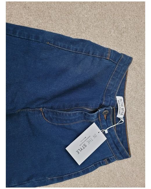 This pair of In The Style women's blue jeans in size 8 features a slim fit with a skinny style. Made from cotton, these jeans have a 5-pocket design with a zip closure. The classic blue colour adds versatility to the wardrobe, perfect for everyday wear. These jeans are new with tags and are a great addition to any woman's clothing collection.
