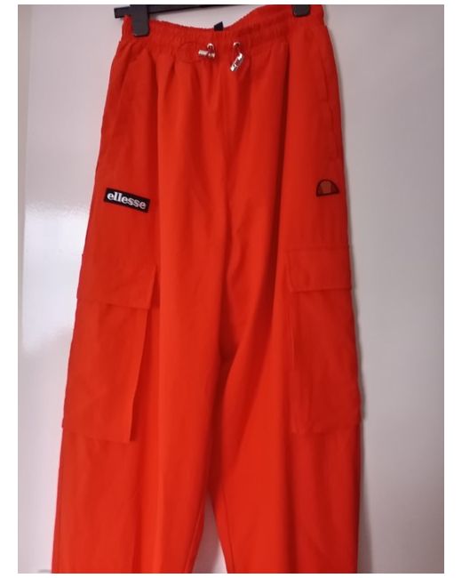 Red Ellesse utility stail cargo pants with 2 side pockets and 2 side leg pockets with 2 bag Ellesse on both sides leg elastic waist with drawcord and ankle but quite loos fit could be used for dance