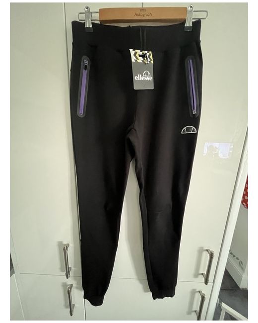 New Ellesse black sweat bottoms size 10. Zip pockets edged in purple, logo on front & back leg, back popper pockets, really nice weight & hang nicely Excellent gift 🎁 RRP £55.00