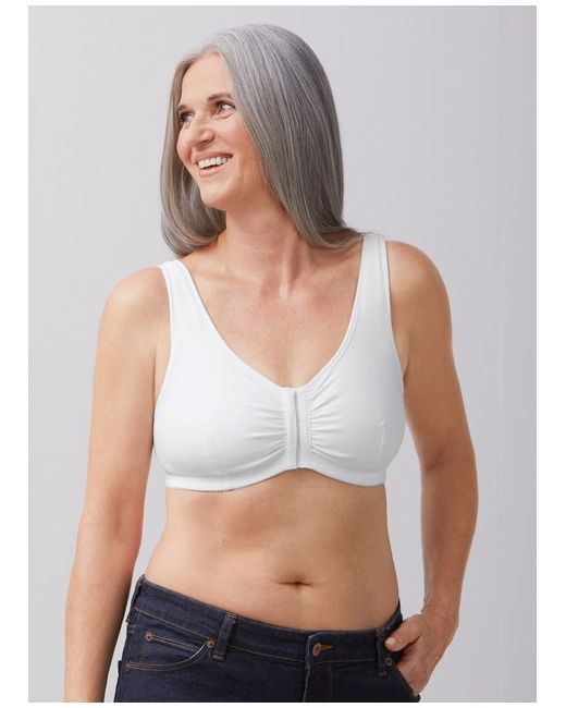 AMOENA 'FLEUR' BRA – WHITE – M E/F. This soft front-fastening leisure bra is ideal to wear for lounging and sleeping. Material: 90% Cotton, 10% Elastane. Size: M Cup Size: E/F.