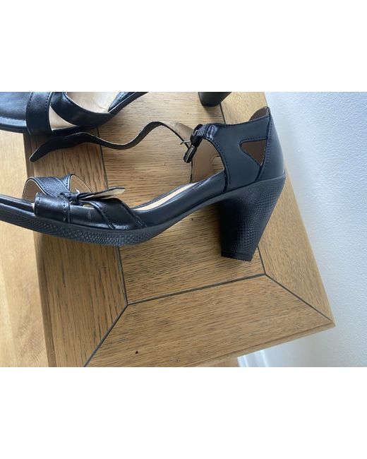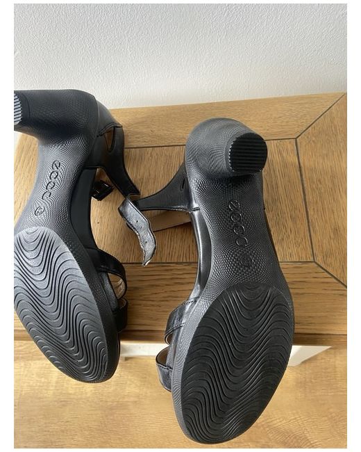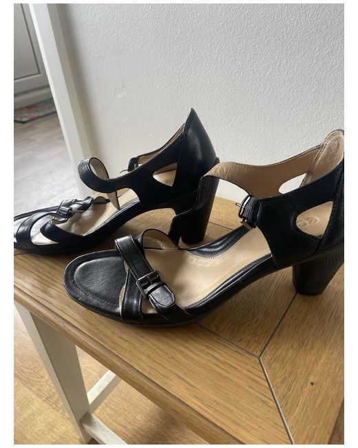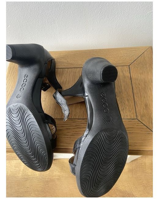 These black ECCO sandals are a great addition to any woman's shoe collection. The synthetic upper material ensures durability, while the comfortable design makes them perfect for everyday wear. The sandals are available in UK size 8 and feature a stylish design that will complement any outfit. Ideal for those who love to travel, the ECCO sandals are versatile enough to be worn on any occasion. The brand is renowned for producing high-quality shoes that are both stylish and comfortable. These sandals are a great example of this, with a sleek black colour that will match any outfit. Black Ecco open toe sandals with strap buckle. Never worn but no box. Herl around 3.5 inches. Uk buyers only - no returns