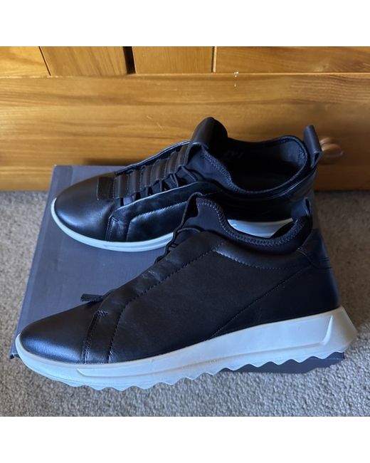 The ECCO Ladies Flexure Runner Sock Trainers in black leather, UK size 6 / EU 39, are a stylish and comfortable choice for women. Made with a combination of leather and textile upper materials, these trainers offer a sleek and modern look. The ECCO brand is known for its quality footwear, and these trainers are no exception, providing both style and durability. The black colour adds a classic touch to the overall design, making them perfect for various casual and athletic outfits.