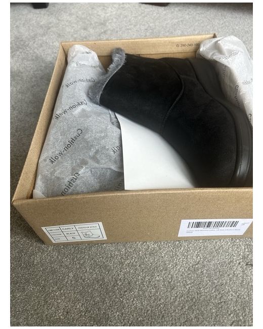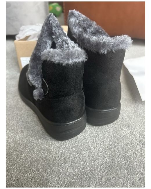Elevate your footwear collection with the Cushion Walk Black Boots, a versatile addition tailored for the modern woman. These boots boast a sleek synthetic upper, providing a sophisticated finish that complements any outfit. Ideal for a day at the office or a casual weekend stroll, their comfortable cushioned insole ensures your feet are cradled in comfort throughout the day. Designed with practicality in mind, these booties feature a sturdy construction that supports your feet, while the elegant black hue offers timeless appeal. Perfectly sized at UK 5, they're a snug fit for those who appreciate footwear that marries style with everyday functionality.
