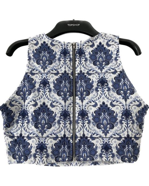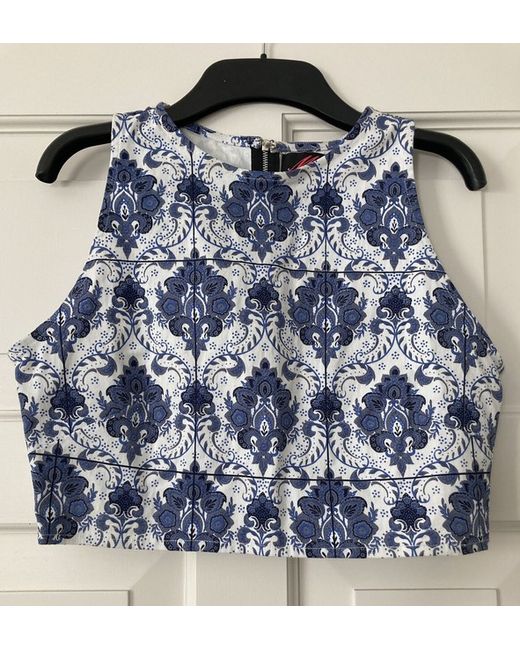 White Crop Top With Gorgeous Blue Pattern. Dispatched with Royal Mail Tracked 48.