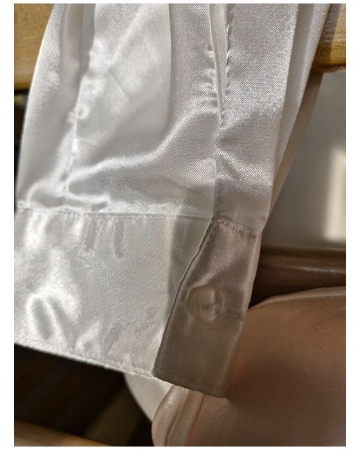Women's White Satin blouse 12 button through rhinestone decoration the collar