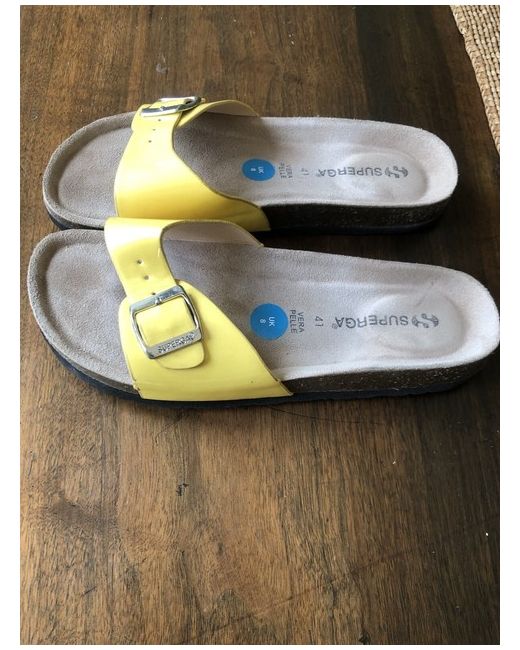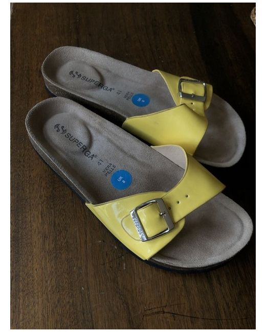 Lovely yellow Birkenstock style sliders, worn once in the house it too small for me. They are a deeper yellow than the pictures show
