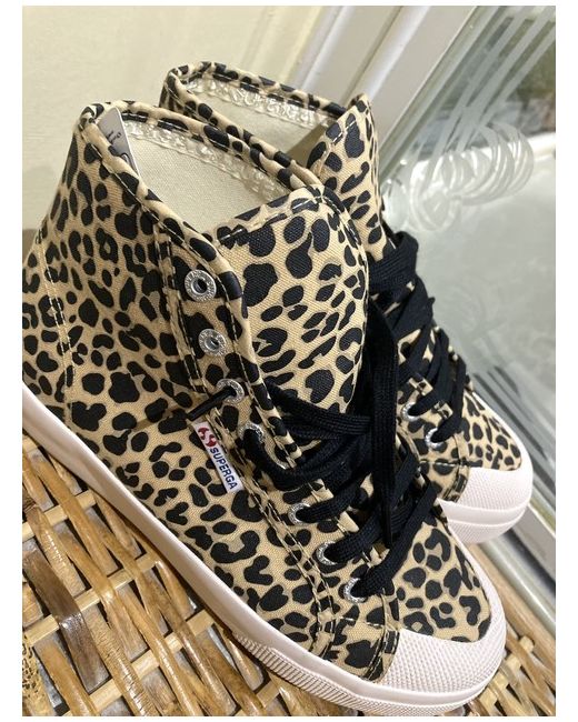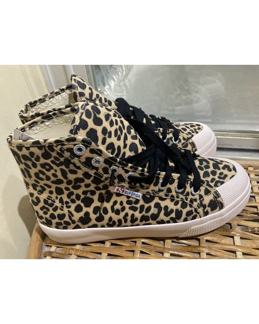 SUPERGA LEOPARD HIGH TOP TRAINERS NEW WITHOUT BOX THE LABEL INSIDE SAYS 5 1/2 BUT THE INSIDE SOLE SAYS 39 AS PER PHOTO WHICH IS A 6 AND I THINK THEY ARE MORE OF A 6 AS A LITTLE BIG FOR ME PAID £70 IN SUMMER BUT WONT WEAR NO BOX BUT THEY HAVE TAGS Can post next day if required