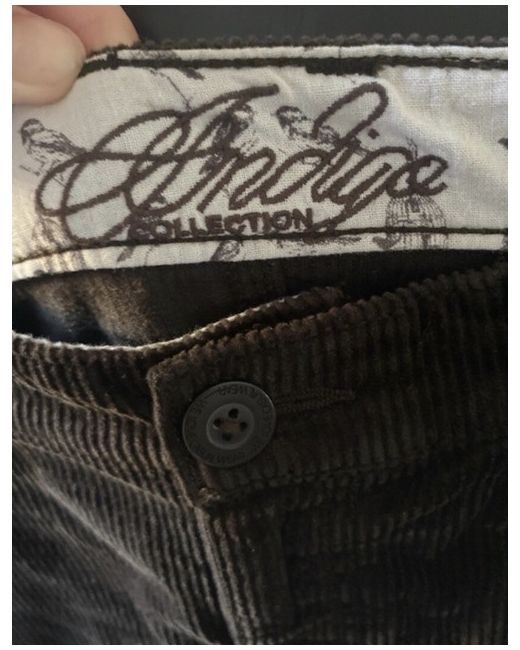 This is a new Indigo Collection brown denim skirt in size 10. It is a short, mini skirt suitable for women. The fabric type is denim, and it has a regular fit. No returns are accepted at this time.