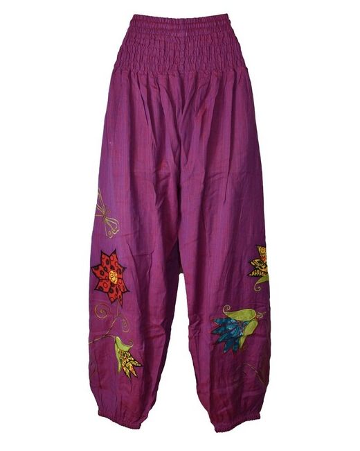 Flower patterns with butterfly goes around the leg front and back. Hippy Flower Pattern Cotton Trousers. These new trousers are made to our design and sizing by our talented tailor in Nepal. The waistband is fully elasticated with super soft elastic and shearing and also has a draw cord.