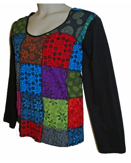 The front is patchwork with printed patterns and the back is plain. Machine washable on a cool wash and line dry! Made a little longer in the body and in sleeve width for comfort! Long Sleeve Cotton Patchwork Top.