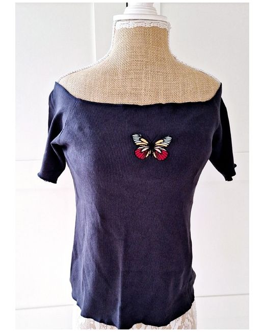 This beautiful blue Bardot top from Rainbow is perfect for any casual occasion. The pullover closure adds to the effortless style of this top, making it a go-to piece for any wardrobe. The embroidered butterfly accents give this top a touch of whimsy, while the solid blue colour makes it versatile and easy to pair with other pieces.