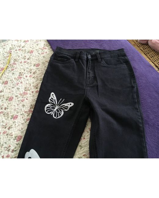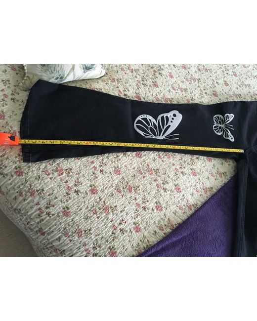 Elevate your denim game with these stylish black bootcut jeans from Rainbow. With a mid-rise waist and a flattering regular fit, these jeans are perfect for any occasion. The 31-inch inside leg and mix material (see photo) make them comfortable and versatile, while the Denim fabric type adds a touch of sophistication. These jeans feature a zip/button closure, stretch for added comfort, pockets for convenience, and a unique butterfly detail for an extra pop of style. Garment care is a breeze with machine washability. Perfect for everyday wear or dressing up, these black size 10/12 jeans are a must-have addition to any wardrobe.
