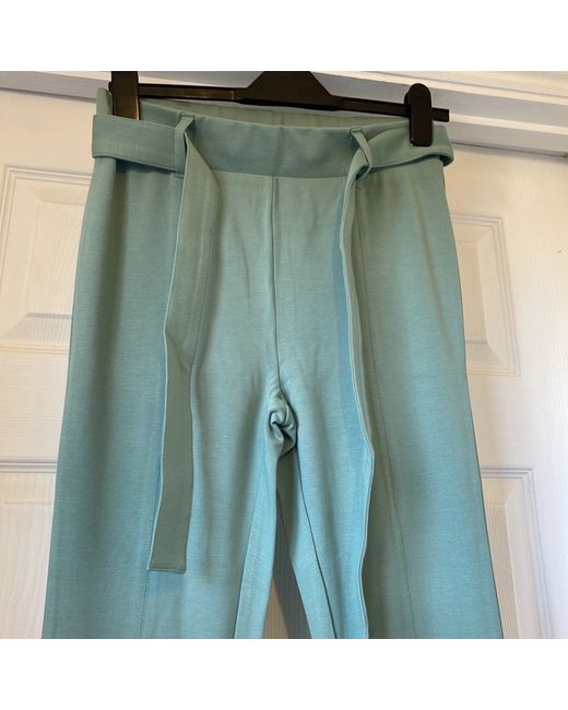 Women's Green Jersey Bootcut Splits Belted Trousers 10 Long