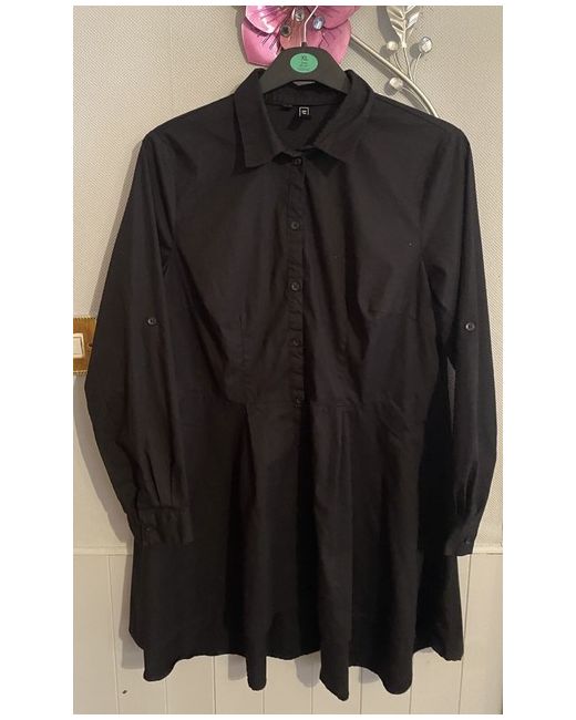 Introducing a versatile and trendy skater/shirt dress in classic black, perfect for any occasion. This knee/above length dress features long sleeves and a collared neckline with button closure. Made from a comfortable cotton blend, this dress is machine washable and easy to care for. The dress is ideal for both casual and workwear, and can be paired with heels or flats. It is a must-have addition to any woman's wardrobe and comes in a regular size 16. This woven fabric dress is available in four seasons and can be worn all year round.