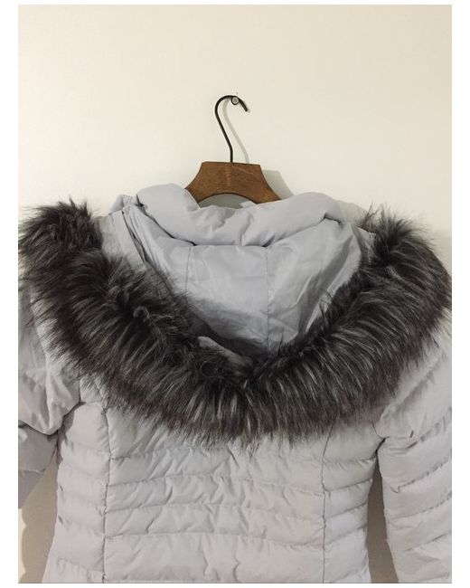 Down Full Zipped Warm Puffer Hooded Jacket Grey S RRP 139.99
