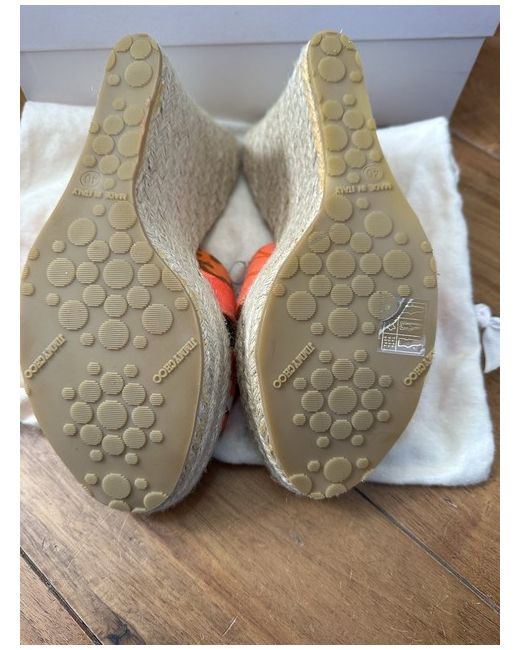 Gorgeous Jimmy Choo Wedge Sandals Bright coloured canvas, with black patent Size 40 Brand New