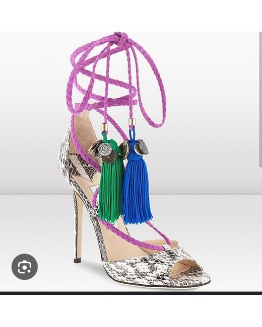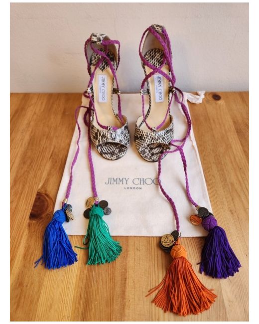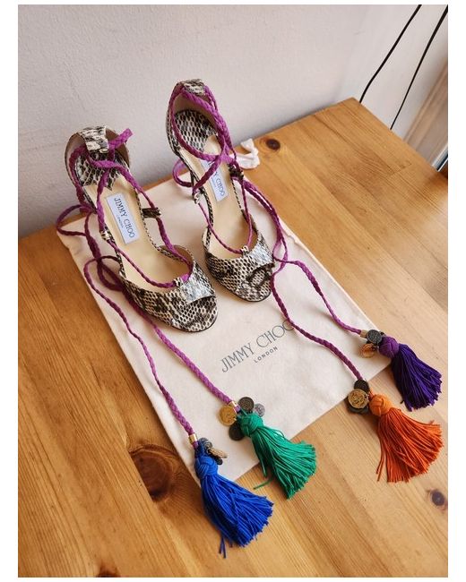 Mindy Tasseled Python Sandals Heels 38 UK 5 new