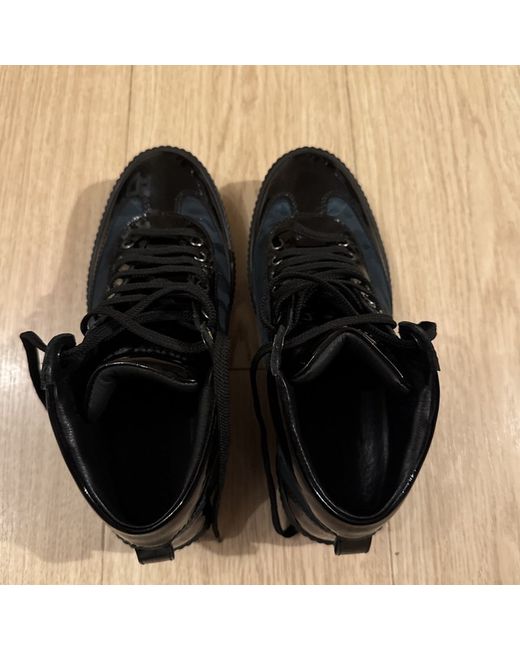 Jimmy Choo trainers in peacock green and gloss black leather. Never used. New condition