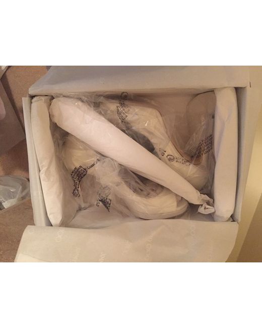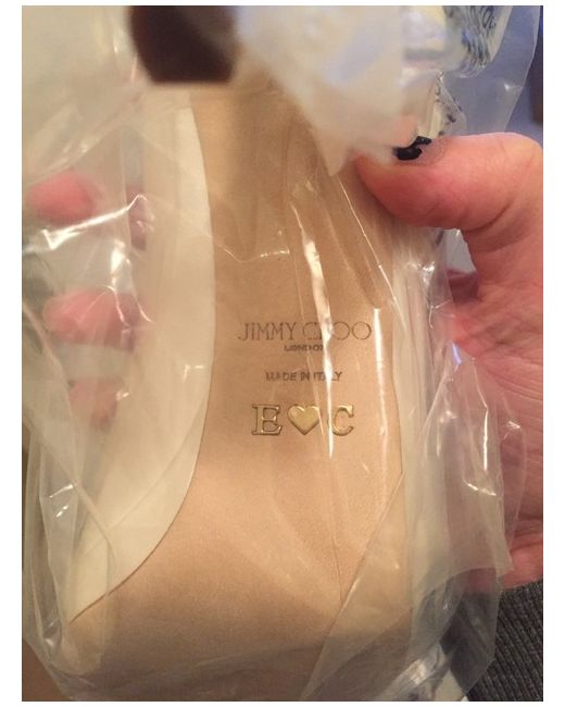 Satin, ivory, size 4.5, bridal Jimmy Choo peep-toe court shoe. Customised on bottom with small gold initials E ❤️C. Made-to-measure shoes purchased from the Jimmy Choo store on New Bond Street, no longer available to buy. Purchased in 2017 for £575, but never worn, sold with box, dust jacket and bag. Very comfortable, heel isn’t too high, gorgeous, classic bridal shoe. Open to reasonable offers.
