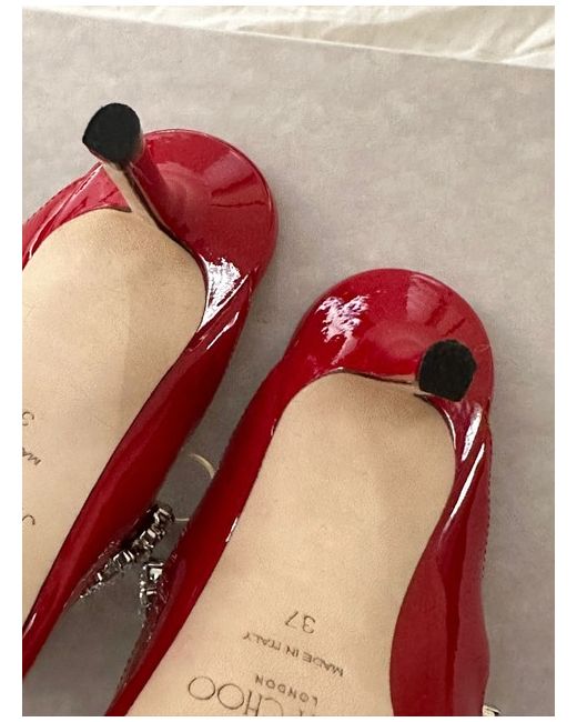 Red glossy shoes comes with receipt boxes and goes for 800 pounds size 4