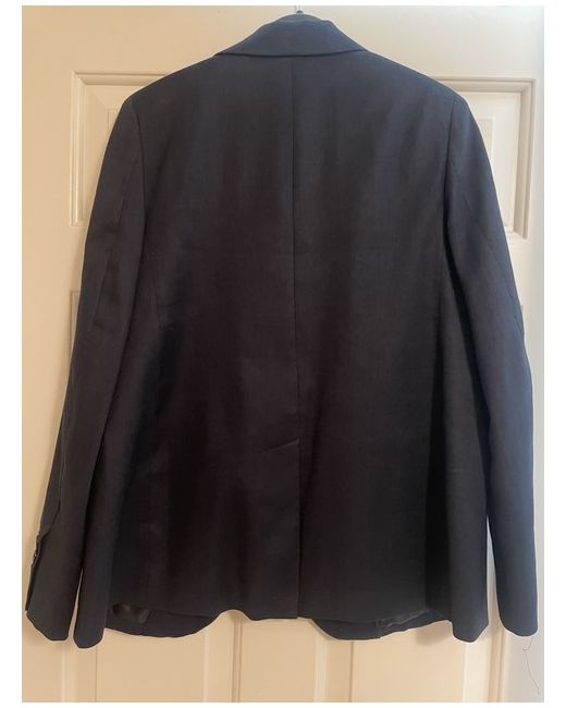 The Jaeger Navy Blazer is a stylish and sophisticated addition to any woman's wardrobe. Made from a high-quality linen blend, this short-length blazer features a classic button closure and a luxurious viscose lining.