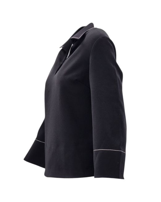 Crafted from fluid crepe, this Jaeger blouse blends a luxurious drape with easy comfort. It's shaped in a relaxed fit, with long sleeves and split cuffs for an effortlessly elegant feel. The v-neckline is complete with a collar, creating a smart-casual look.
