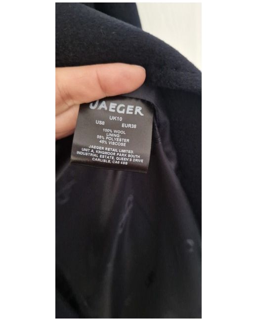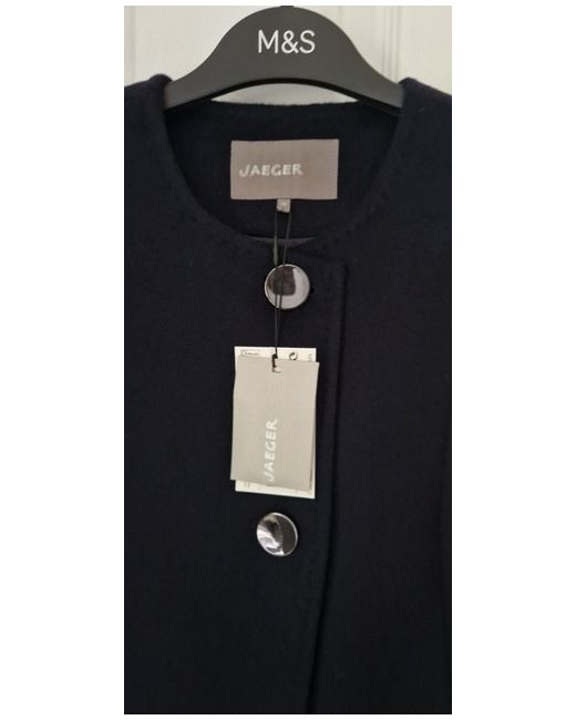 ***** Brand New With Tags ***** Gorgeous coat by Jaeger Brought from Marks & Soencers Size 10 Navy colour 2 button fastening and comes with spare 100% wool Lining : 55% polyester and 45% viscose Looks beautiful on Peacoat style Paid £250