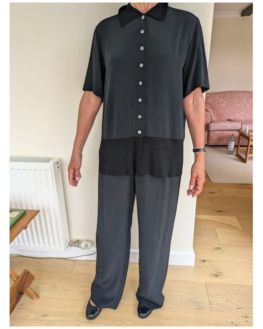 Ribbed collar and hem, top back length 28". Trousers elasticated waist, inside leg 30", legs 11" wide, condition as new.