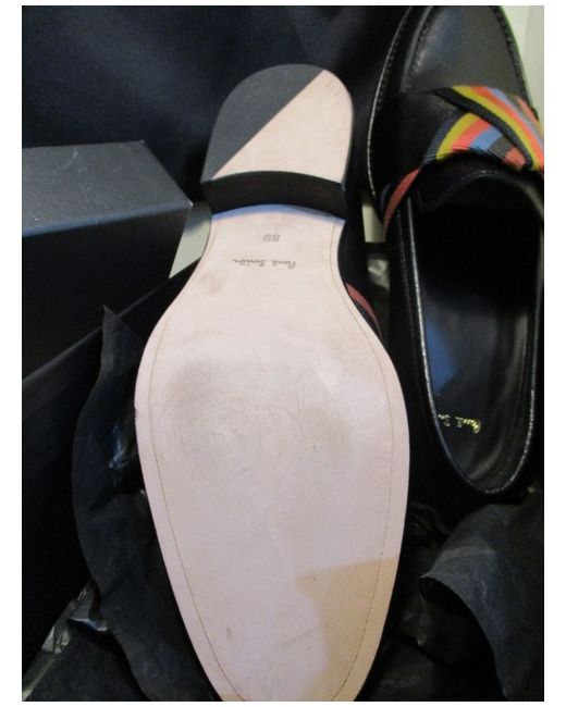 Elevate your style with these stunning Paul Smith women's shoes in wolf black stripe. Crafted from high-quality leather, these loafers are the perfect addition to any wardrobe. The iconic brand's signature striped pattern adds a touch of sophistication to your attire.Ideal for any occasion, these shoes are perfect for the modern woman who wants to make a statement. The black colour complements any outfit, making them a versatile addition to your shoe collection. Whether you're dressing up for a night out or heading to the office, these Paul Smith women's shoes are the perfect choice.