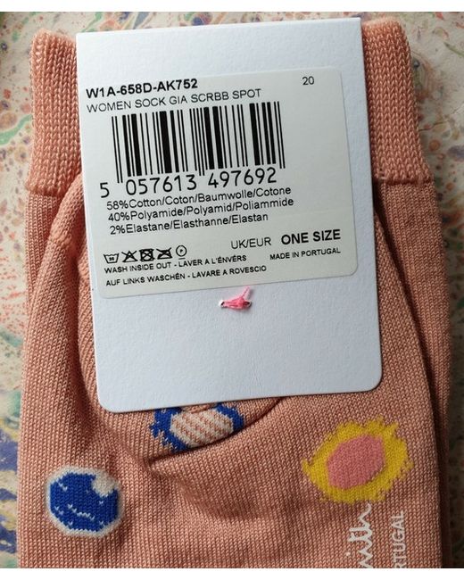 Women's Pink Socks Gia Scribble Spot White Blue K752 One CottonMix