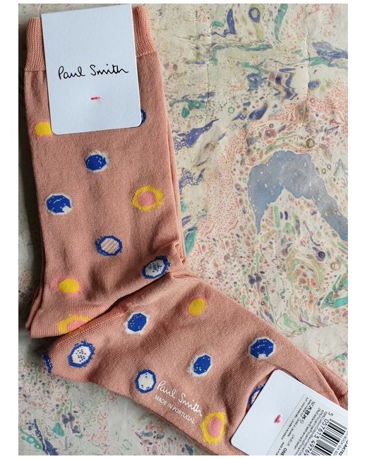 Style Ref:K752 Gia Scribble Spot. These socks are produced in Portugal for Paul Smith. Colour Variation:20 Pink & Blue. Each item is wrapped with soft tissue or bubble protection. Sock Size: One Size.