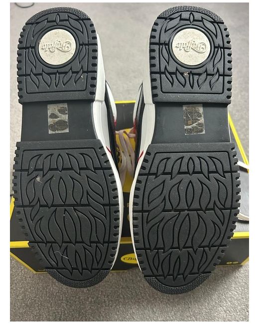 White, blue and red. Never worn. With original box. Black snakeskin overlay.