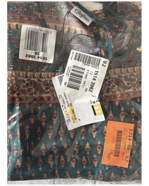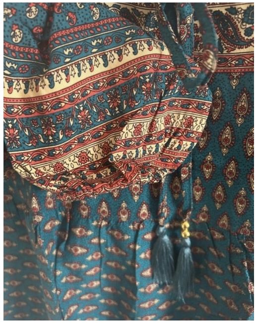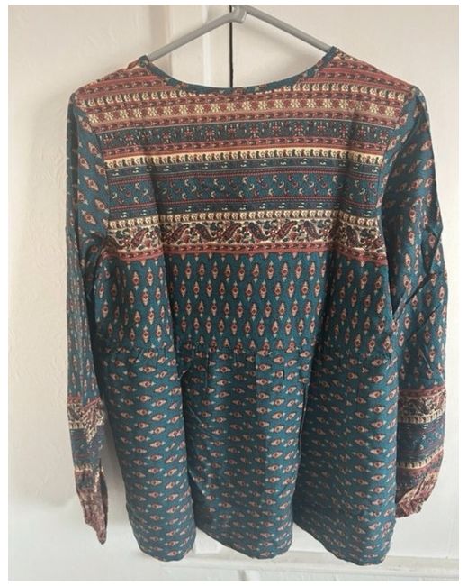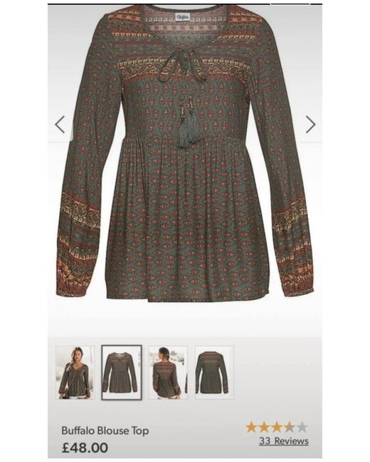 New in original packaging Lovely printed blouse with binding ribbon and decorative beads Size 12 Buffalo