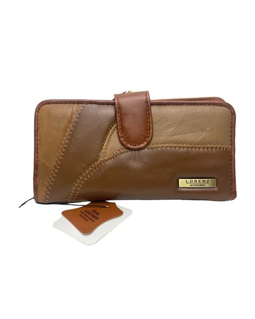 LADIES PURSE BY LORENZ. MATERIAL: SOFT PATCHWORK LEATHER. AVAILABLE IN BLACK,RED,BROWN AND TAN (COLOURS MAY VARY DUE TO THE PATCHWORK DESIGN). 4 CREDIT CARD SLOTS. SIZE APPROX : 17.5cm X 9cm X 2cm WHEN EMPTY.