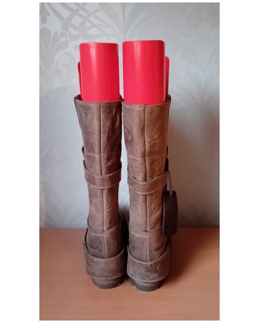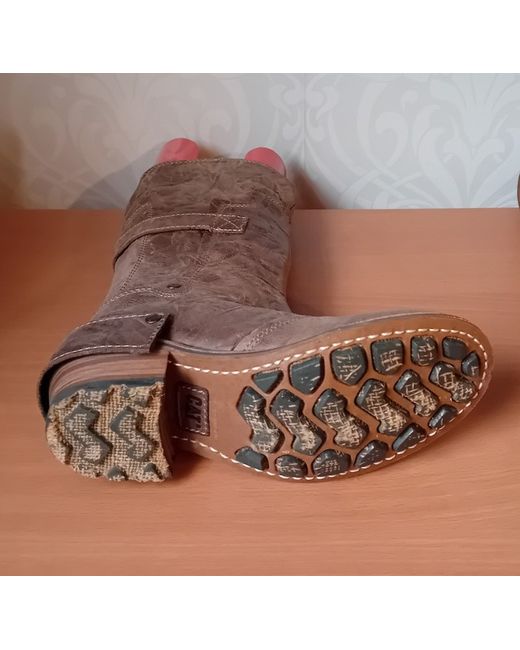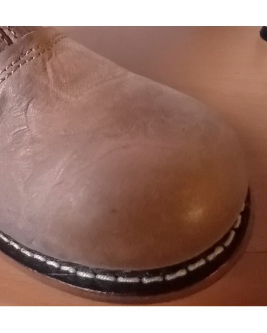 Fantastic pair of boots from Caterpillar CAT. In brown distressed leather, these pull on boots have a man made lining, cushioned insole, block heel and gripped rubber sole. On the innerside of the top right boot there are scuff marks.