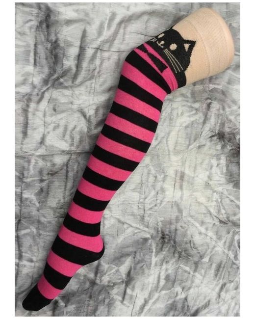 Pink and Black Cat Top Knee High Socks. YOU WILL RECEIVE 1 PAIR OF LADIES THIGH HIGH/OVER THE KNEE SOCKS. COLOUR:-PINK & BLACK with Cat Pattern. The pink colour is a brighter than the photo.