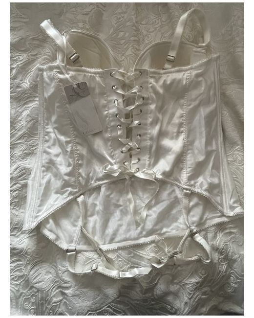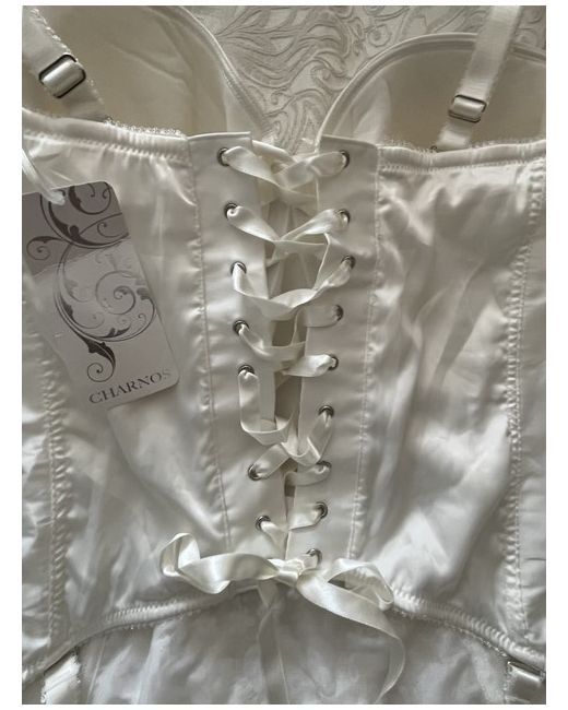 Embrace elegance with the Charnos ‘Belle’ Basque in a classic ivory hue, a must-have for your wedding wardrobe. Designed for the modern bride, this size 36G corset basque offers full cup coverage, ensuring a flattering and comfortable fit. The piece is crafted from a blend of polyester, polyamide, and elastane, promising both support and stretch for an ideal silhouette. Adorned with delicate lace, intricate embroidery, and sequin accents, the basque is a testament to Charnos' commitment to exquisite detailing. It features adjustable straps, a back closure for a secure fit, and removable suspender straps for versatile styling. The ‘Belle’ Basque is a celebration of timeless sophistication, perfect for any bridal ensemble.