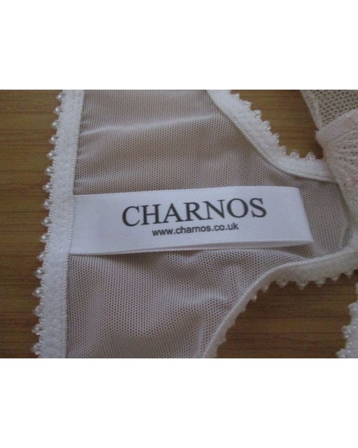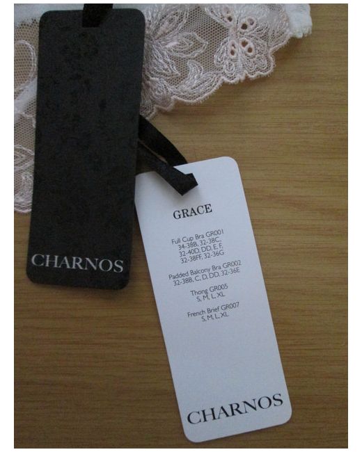 CHARNOS Thong 'GRACE' White with Pink embroidery. The coat hanger is not included unless you ask for it.